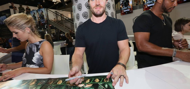 The cast of Arrow signed autographs today at the Comic-Con International in San Diego, and we’ve got some pics of the cast with Executive Producer Wendy Mericle as they meet with fans. (Stephen Amell also makes a cameo in a similar Flash gallery).