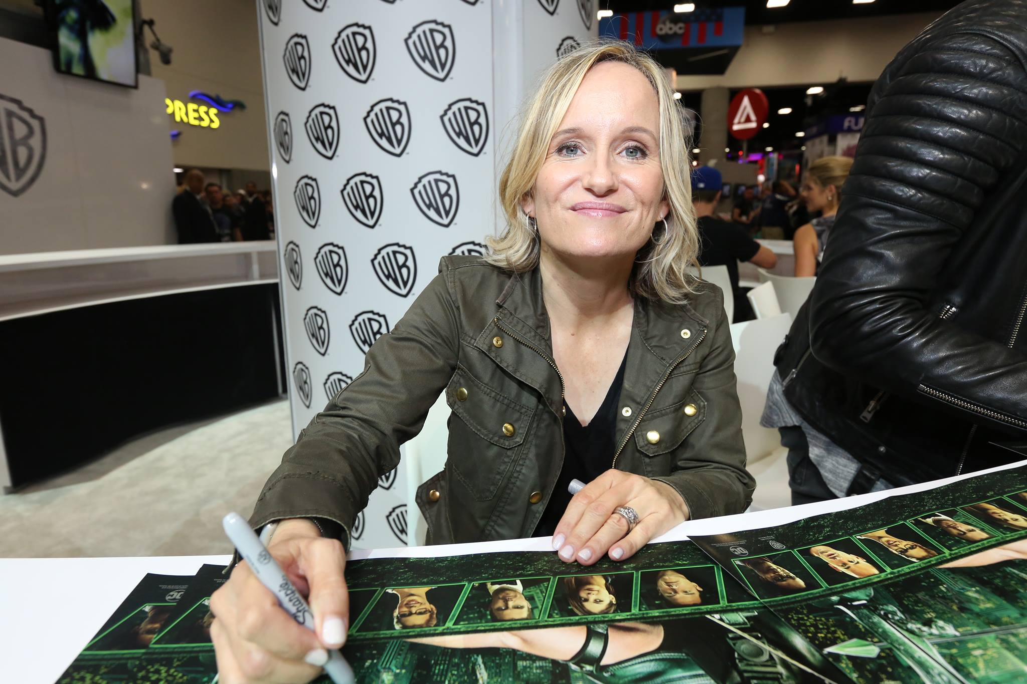 The cast of Arrow signed autographs today at the Comic-Con International in San Diego, and we’ve got some pics of the cast with Executive Producer Wendy Mericle as they meet with fans. (Stephen Amell also makes a cameo in a similar Flash gallery).