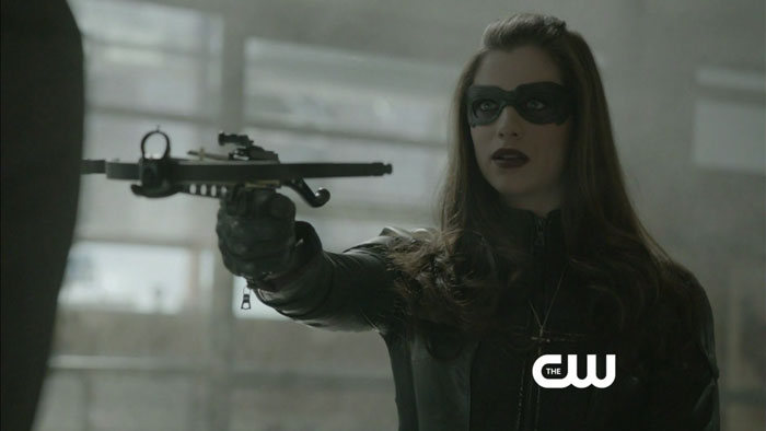The video clip itself does not appear to be online yet, but thanks to Mr. Video, we have screen captures from a scene from the March 26 episode of Arrow, which is called “Birds of Prey.”