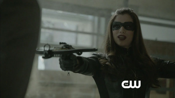 The video clip itself does not appear to be online yet, but thanks to Mr. Video, we have screen captures from a scene from the March 26 episode of Arrow, which is called “Birds of Prey.”