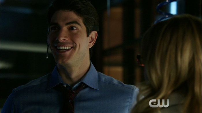 H102A-415-ARW-110-32The clip doesn’t appear to be online yet, but it features Ray (Brandon Routh), Felicity (Emily Bett Rickards), and Oliver (Stephen Amell). Ray’s doing a lot of geeking out in the clip, and Oliver seems to have a perpetual annoyed “I just can’t even” face over Palmer’s puppy-like enthusiasm. There is also a reluctant high-five involved. We’ll have to see how the clip plays out once it’s online… follow @GreenArrowTV on Twitter and we’ll update you as soon as we have a link. Knowing The CW, it will probably be out sometime today.
