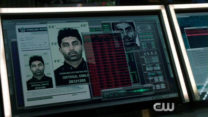 In the clip, Felicity guides the Arrow on his pursuit of somebody named “Ortega” – but when he finds him, it appears that Ortega is just hanging around… and there’s someone else at the scene who looks to be guilty.