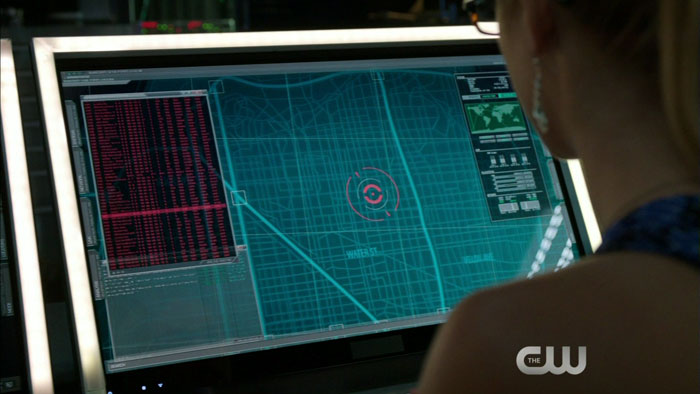 In the clip, Felicity guides the Arrow on his pursuit of somebody named “Ortega” – but when he finds him, it appears that Ortega is just hanging around… and there’s someone else at the scene who looks to be guilty.