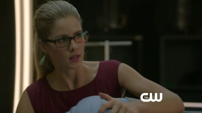 Thanks to Mr. Video, we have screen captures from a preview clip for the episode, featuring Stephen Amell (Oliver), Emily Bett Rickards (Felicity), and David Ramsey (Diggle). We, too, would like to know how Felicity is able to hold Diggle down here, but maybe it’s a lot calmer in the clip itself.