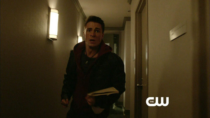 The clip features Roy Harper (Colton Haynes), who doesn’t seem to learn from getting an arrow to the leg, as he still starts investigating. I guess the “Blood Rush” got to his head…