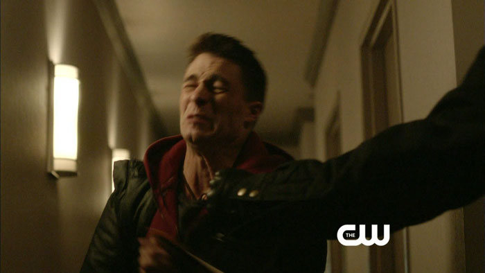 The clip features Roy Harper (Colton Haynes), who doesn’t seem to learn from getting an arrow to the leg, as he still starts investigating. I guess the “Blood Rush” got to his head…