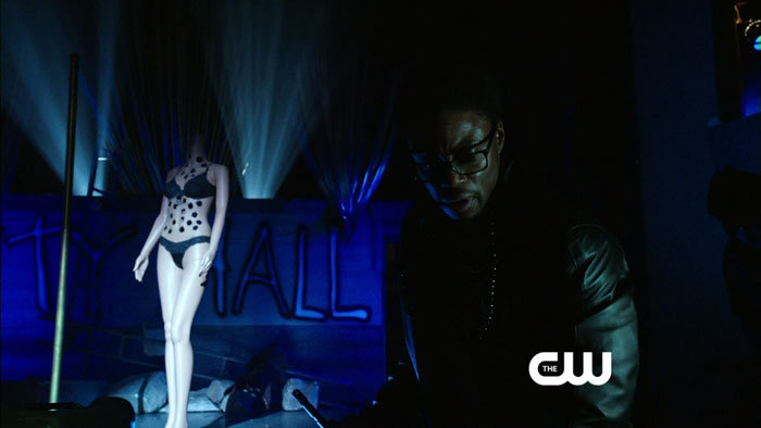 A preview clip for the October 30 episode of Arrow, titled “Crucible,” doesn’t seem to be online yet, but thanks to Mr. Video, we have screen captures from a clip, featuring “the Arrow” checking out some bad guys before making his move.