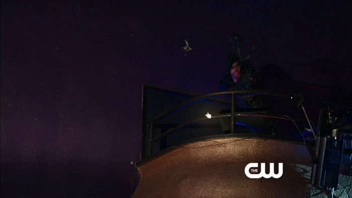 H052A-O30-ARW-110-48A preview clip for the October 30 episode of Arrow, titled “Crucible,” doesn’t seem to be online yet, but thanks to Mr. Video, we have screen captures from a clip, featuring “the Arrow” checking out some bad guys before making his move.