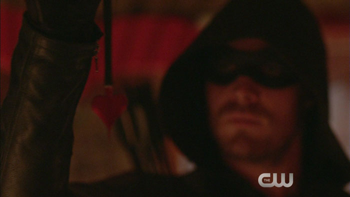 The webclip for Wednesday night’s new episode “Draw Back Your Bow” features Stephen Amell as Oliver/The Arrow, birthday boy David Ramsey as Diggle, and Amy Gumenick as Cupid. Enjoy the caps below, and if the clip goes online, we’ll post it.