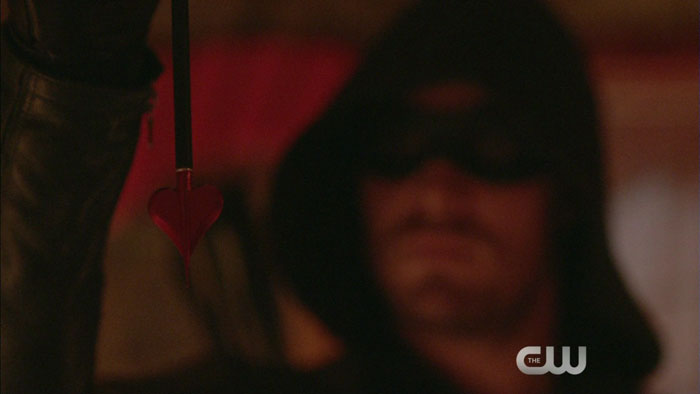 The webclip for Wednesday night’s new episode “Draw Back Your Bow” features Stephen Amell as Oliver/The Arrow, birthday boy David Ramsey as Diggle, and Amy Gumenick as Cupid. Enjoy the caps below, and if the clip goes online, we’ll post it.