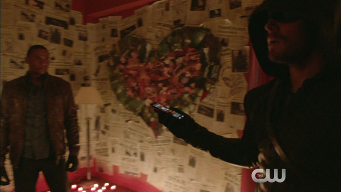 The webclip for Wednesday night’s new episode “Draw Back Your Bow” features Stephen Amell as Oliver/The Arrow, birthday boy David Ramsey as Diggle, and Amy Gumenick as Cupid. Enjoy the caps below, and if the clip goes online, we’ll post it.