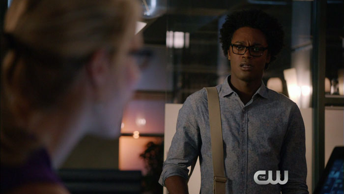 The clip features Emily Bett Rickards as Felicity, Echo Kellum as Curtis Holt, and Stephen Amell as Oliver… and it also shows the first meeting between Oliver and Curtis!