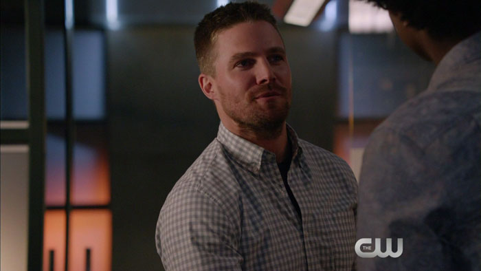 The clip features Emily Bett Rickards as Felicity, Echo Kellum as Curtis Holt, and Stephen Amell as Oliver… and it also shows the first meeting between Oliver and Curtis!