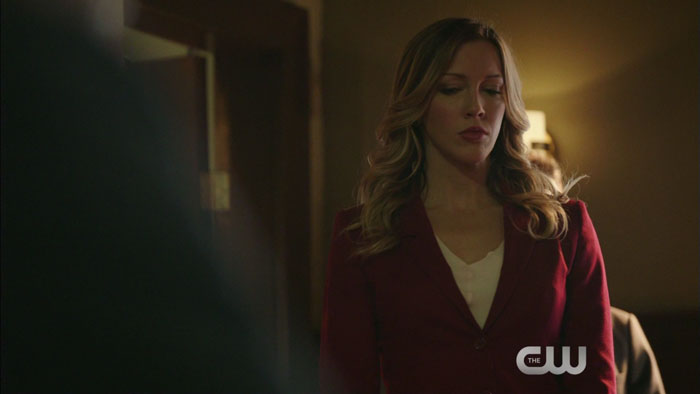 The clip features Katie Cassidy as Laurel, Brandon Routh as Ray, and Vinnie Jones as the villain Danny “Brick” Brickwell; but if you look at all the caps, you’ll also see that Paul Blackthorne (Quentin) and Emily Bett Rickards (Felicity) show up too.