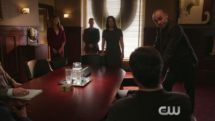 The clip features Katie Cassidy as Laurel, Brandon Routh as Ray, and Vinnie Jones as the villain Danny “Brick” Brickwell; but if you look at all the caps, you’ll also see that Paul Blackthorne (Quentin) and Emily Bett Rickards (Felicity) show up too.