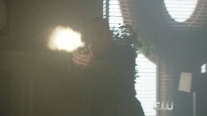 The clip features Katie Cassidy as Laurel, Brandon Routh as Ray, and Vinnie Jones as the villain Danny “Brick” Brickwell; but if you look at all the caps, you’ll also see that Paul Blackthorne (Quentin) and Emily Bett Rickards (Felicity) show up too.