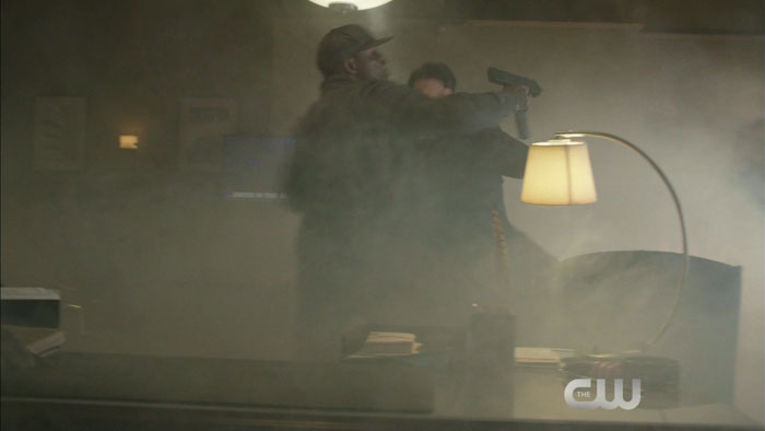 H141A-128-ARW-110-85We’re assuming the actual video clip will surface in a day or two, but thanks to Mr. Video, we have screen captures from a preview clip for Wednesday’s new episode of Arrow, titled “Midnight City.”