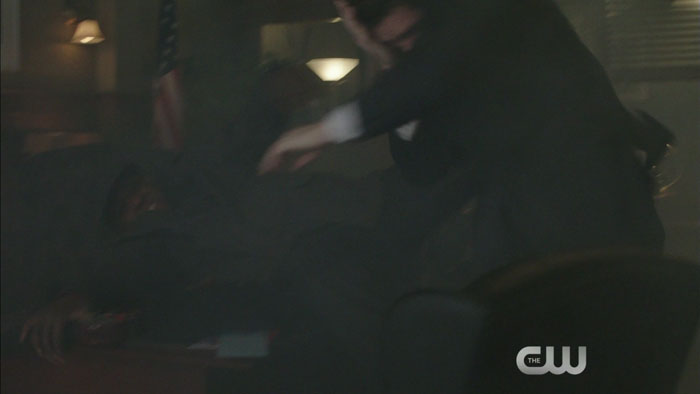 H141A-128-ARW-110-85We’re assuming the actual video clip will surface in a day or two, but thanks to Mr. Video, we have screen captures from a preview clip for Wednesday’s new episode of Arrow, titled “Midnight City.”