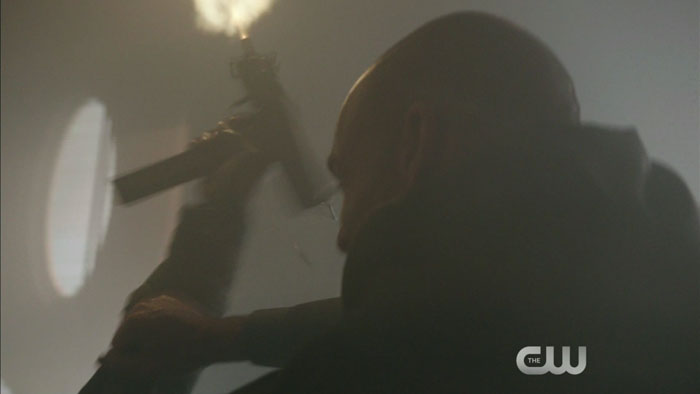 H141A-128-ARW-110-85We’re assuming the actual video clip will surface in a day or two, but thanks to Mr. Video, we have screen captures from a preview clip for Wednesday’s new episode of Arrow, titled “Midnight City.”