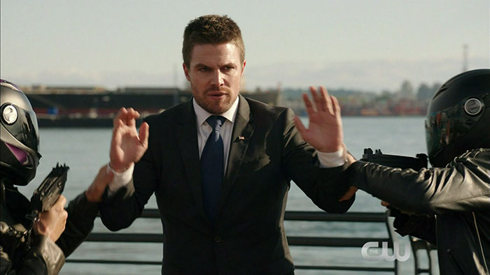 We get to see the Black Canary statue and Chad L. Coleman’s Tobias Church, and it also looks like Mayor Oliver Queen is abducted… this guy doesn’t know what’s coming to him, does he?