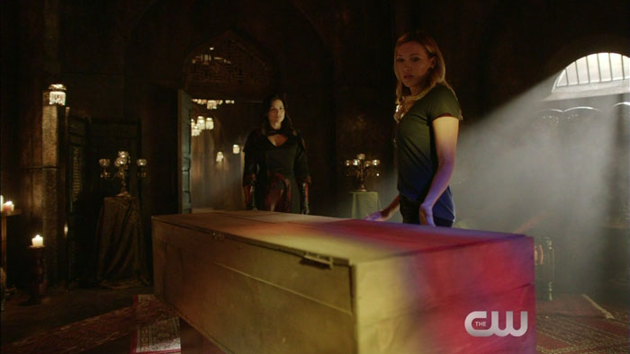 The clip features Katie Cassidy as Laurel Lance and Katrina Law as Nyssa, surely arguing about the idea of bringing Sara (Caity Lotz) back to life via the Lazarus Pit.
