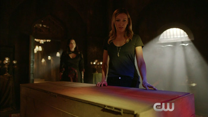 The clip features Katie Cassidy as Laurel Lance and Katrina Law as Nyssa, surely arguing about the idea of bringing Sara (Caity Lotz) back to life via the Lazarus Pit.