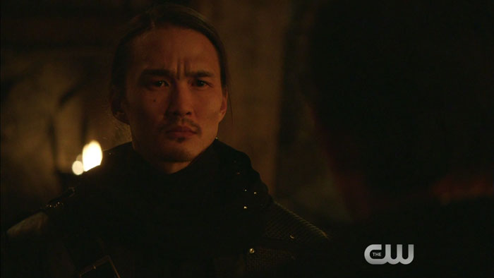 The clip features Matt Nable as Ra’s al Ghul, Stephen Amell as Oliver Queen — err, Al Sah-Him, and Karl Yune as Maseo.