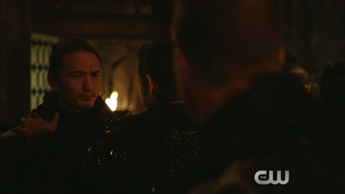 The clip features Matt Nable as Ra’s al Ghul, Stephen Amell as Oliver Queen — err, Al Sah-Him, and Karl Yune as Maseo.