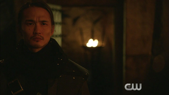 The clip features Matt Nable as Ra’s al Ghul, Stephen Amell as Oliver Queen — err, Al Sah-Him, and Karl Yune as Maseo.