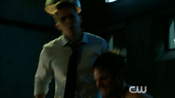 The episode is called “Kapiushon” and the trailer shows off what a sadistic something-or-other that Adrian Chase is. Also, Oliver Queen in chains! Enjoy the screencaps below.