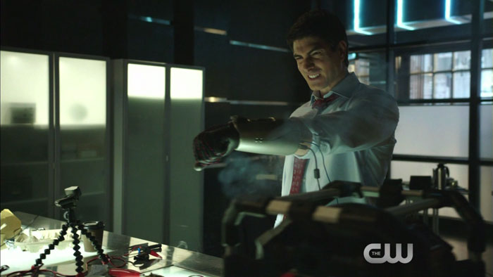 S020X-121-ARW-110-04The CW has released some new promo trailers for the January 21 return of Arrowyou can find those here – and now, Mr. Video has brought to us some screen captures for a better look at what we have to look forward to, including Arsenal, a Canary, Team Arrow, and Brandon Routh’s Ray Palmer playing with gadgets!