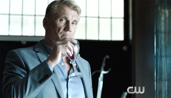 There’s a new promo trailer for Arrow Season 5, the new season that is less than a week away…. you can find the video as well as a shot-for-shot analysis here on GreenArrowTV. But if still frames are more your thing — you know, so you can try to figure out who Felicity is kissing, or want to bask in the awe at Dolph Lundgren on Arrow — we’ve got ’em for you.