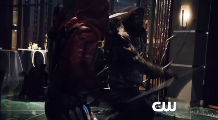 Screen-Shot-2014-10-12-at-9.36.29-AMWe’re only a few days away from the next episode of Arrow, which is called “Sara,” and The CW has released an extended trailer full of some interesting shots. Sara’s grave! Our first real look at Komodo! Grieving characters! Arsenal doing his thing at Queen Consolidated… in front of Ray Palmer?!?! Lots of good stuff, right? It also looks like Laurel might be telling her father what happened to Sara after all, unless that shot of the hug is a fake-out.