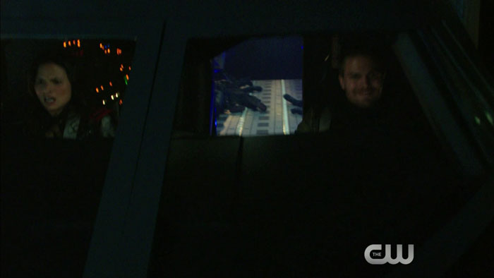 Screen captures from the extended promo trailer for the Arrow season finale, titled My Name Is Oliver Queen Arrow: Screencaps From The Season 3 Finale Promo – With The Flash!