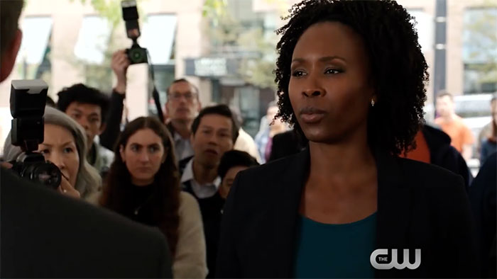 We have some interviews, official photos, spoilers and more related to the episode here at GreenArrowTV, but right now we’re going to share some still frames from the trailer to the episode. Oliver Queen is apparently arrested on Turkey Day, Cayden James (Michael Emerson) is a person of interest, and there’s an awesome shot of the “New” Team Arrow members. Also, Black Siren (Katie Cassidy) is back!