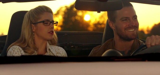 On Saturday at the Comic-Con International in San Diego, we spoke with the cast of Arrow in a press room that preceded the big “Night of DC Entertainment” panel that night. One of the folks we spoke to while there was the popular Emily Bett Rickards, who plays Felicity Smoak, the woman who got Oliver Queen’s heart and drove off with him into the sunset — literally — at the end of Season 3.