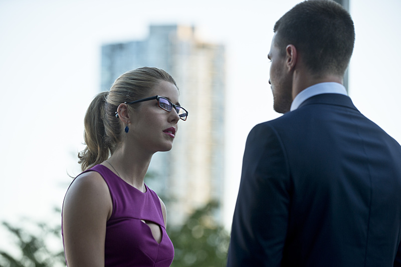 Arrow -- "The Calm" -- Image AR301b_0178b -- Pictured (L-R): Emily Bett Rickards as Felicity Smoak and Stephen Amell as Oliver Queen -- Photo: Cate Cameron/The CW -- © 2014 The CW Network, LLC. All Rights Reserved.