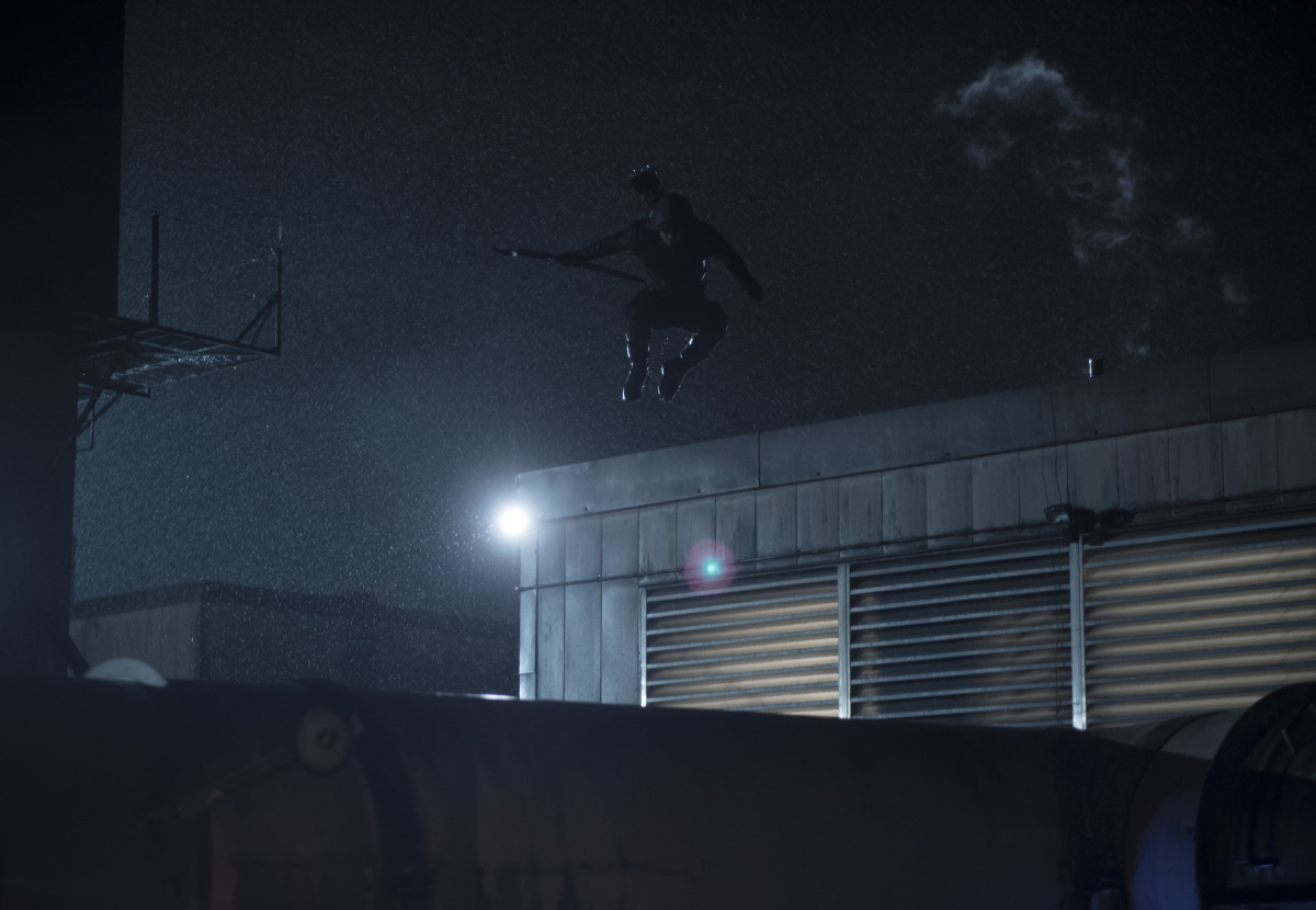 THE EPIC SEASON FINALE OF ARROW — With a new ally on his team, Oliver (Stephen Amell) engages Diaz (guest star Kirk Acevedo) in an epic final battle. James Bamford directed the episode written by Wendy Mericle & Marc Guggenheim (#623). Original airdate 5/17/2018.