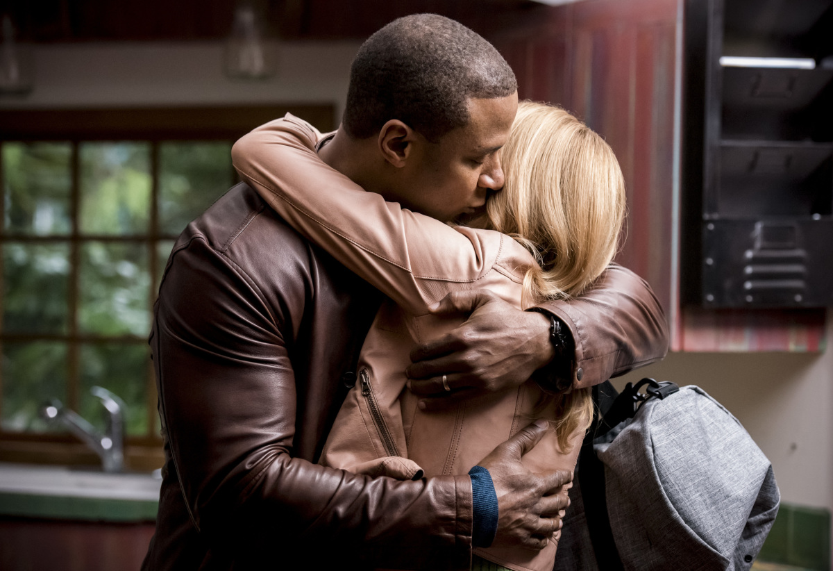 Arrow -- "You Have Saved This City" -- Image Number: AR722B_0351b.jpg -- Pictured (L-R): David Ramsey as John Diggle/Spartan and Emily Bett Rickards as Felicity Smoak -- Photo: Dean Buscher/The CW -- © 2019 The CW Network, LLC. All Rights Reserved.