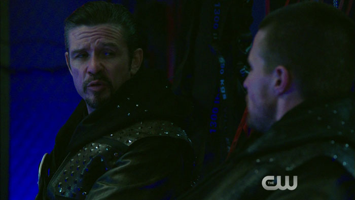 To promote it, The CW will be releasing some preview clips for sure… and thanks to Mr. Video, we have screen captures from one of them. In this clip, which features Stephen Amell as Oliver Queen/Al Sah-Him with Matt Nable as Ra’s al Ghul, we finally see what that new set is that Marc Guggenheim tweeted about weeks ago – it’s the inside of an airplane.