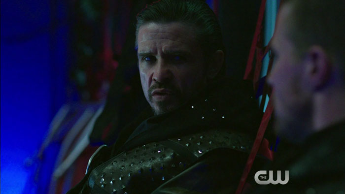 To promote it, The CW will be releasing some preview clips for sure… and thanks to Mr. Video, we have screen captures from one of them. In this clip, which features Stephen Amell as Oliver Queen/Al Sah-Him with Matt Nable as Ra’s al Ghul, we finally see what that new set is that Marc Guggenheim tweeted about weeks ago – it’s the inside of an airplane.