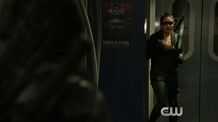 While we wait for some official photos, thanks to Mr. Video, we have some screen captures from an extended version of the promo trailer for the November 9 episode of Arrow. (The trailer itself can be found here).