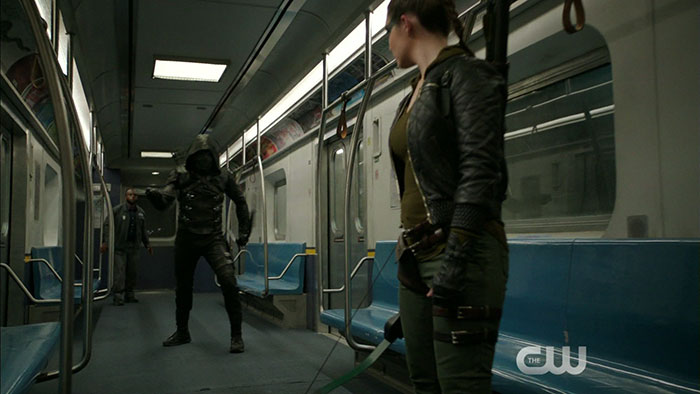 While we wait for some official photos, thanks to Mr. Video, we have some screen captures from an extended version of the promo trailer for the November 9 episode of Arrow. (The trailer itself can be found here).