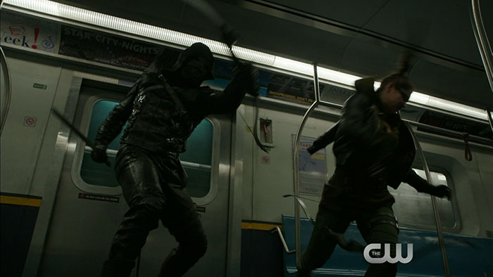 While we wait for some official photos, thanks to Mr. Video, we have some screen captures from an extended version of the promo trailer for the November 9 episode of Arrow. (The trailer itself can be found here).