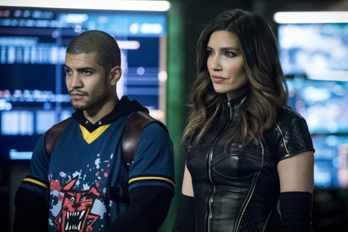 Arrow -- "Spartan" -- Image Number: AR719a_0249b -- Pictured (L-R): Rick Gonzalez as Rene Ramirez/Wild Dog and Juliana Harkavy as Dinah Drake/Black Canary -- Photo: Dean Buscher/The CW -- © 2019 The CW Network, LLC. All Rights Reserved.