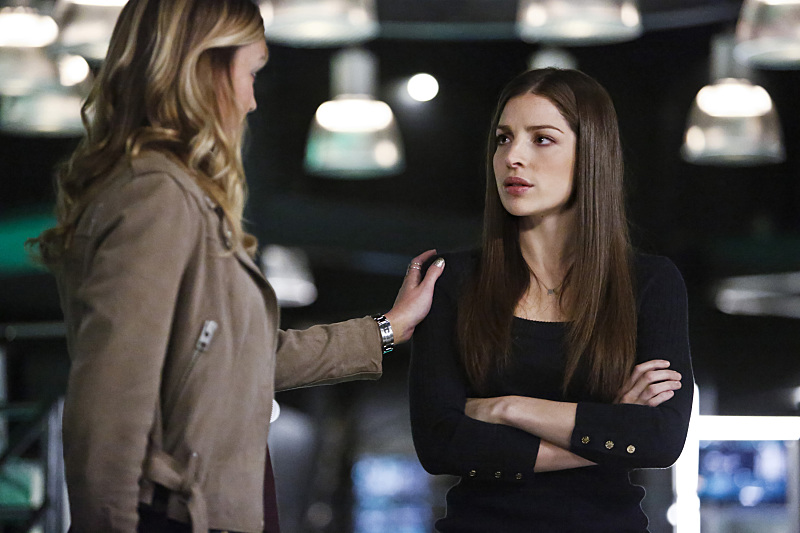 Arrow -- "Taken" -- Image AR415b_0180b.jpg -- Pictured (L-R): Katie Cassidy as Laurel Lance/Black Canary and Anna Hopkins as Samantha -- Photo: Bettina Strauss/ The CW -- © 2016 The CW Network, LLC. All Rights Reserved.