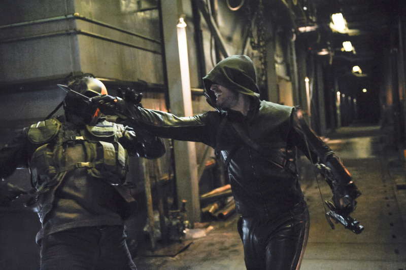 Arrow -- "City of Blood" -- Image AR221a_0133b -- Pictured: Stephen Amell as The Arrow fighting Mirakuru Soldier -- Photo: Alan Zenuk/The CW -- © 2014 The CW Network, LLC. All Rights Reserved.