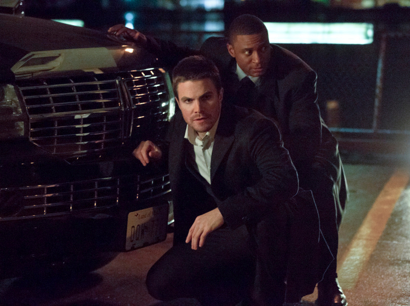 Arrow -- "Vertigo" -- Image AR112a_2595bc – Pictured (L-R): Stephen Amell as Oliver Queen and David Ramsey as John Diggle -- Photo: Jack Rowand/The CW -- ©2013 The CW Network. All Rights Reserved