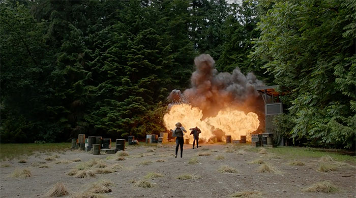 Now, if you’re seeking even more clues, we have screen captures from that above-mentioned trailer, so we can see the good new stuff in still frames! The slideshow starts around the time new footage starts up, with a few shots from the Season 5 finale “Lian Yu” added for context.
