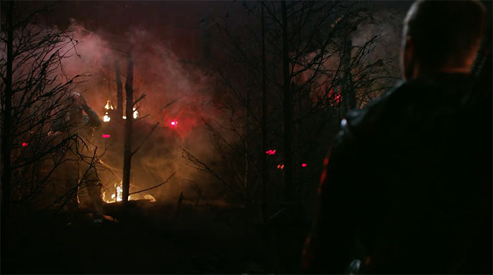 Now, if you’re seeking even more clues, we have screen captures from that above-mentioned trailer, so we can see the good new stuff in still frames! The slideshow starts around the time new footage starts up, with a few shots from the Season 5 finale “Lian Yu” added for context.